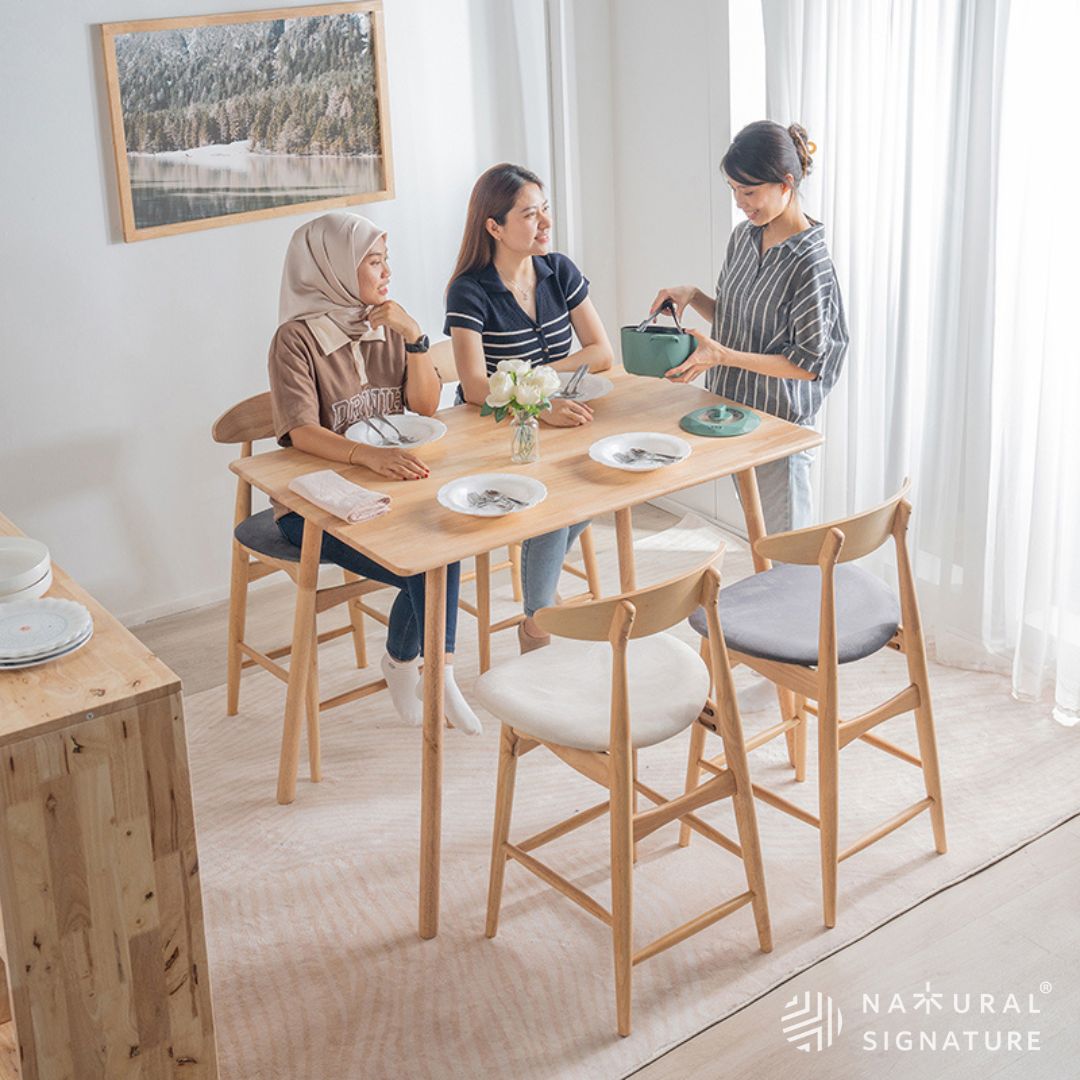 • Meja makan tinggi — juga dikenali sebagai meja berketinggian kaunter atau meja bar.