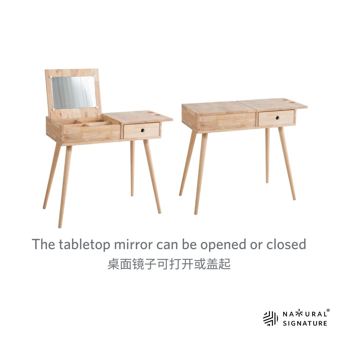• Cermin meja solek yang boleh dilipat untuk menjadikan sebuah meja yang panjang.