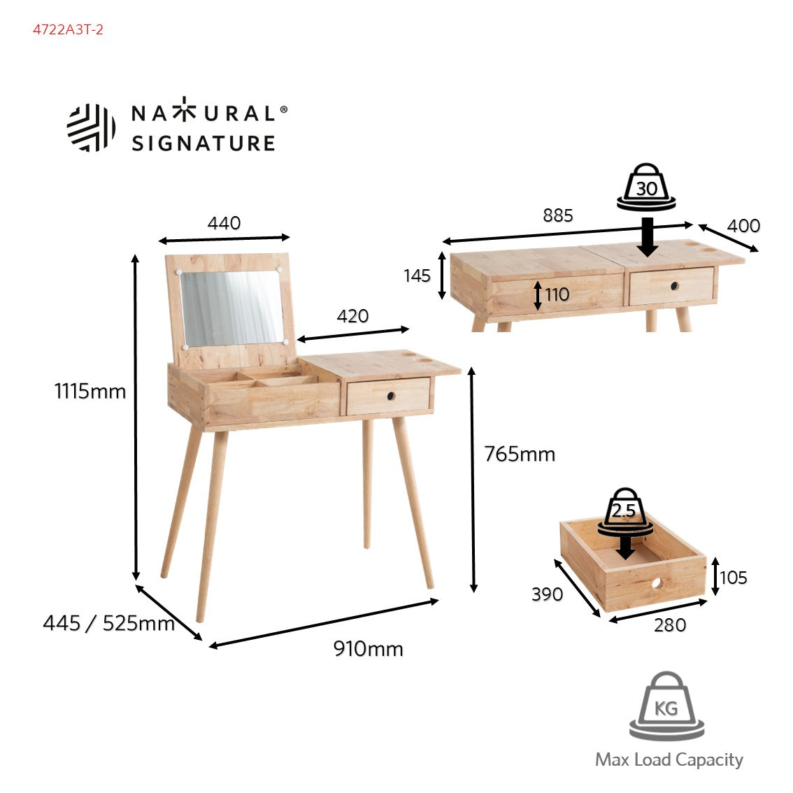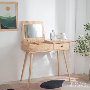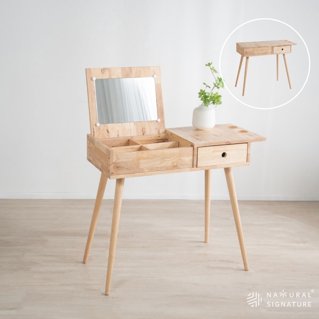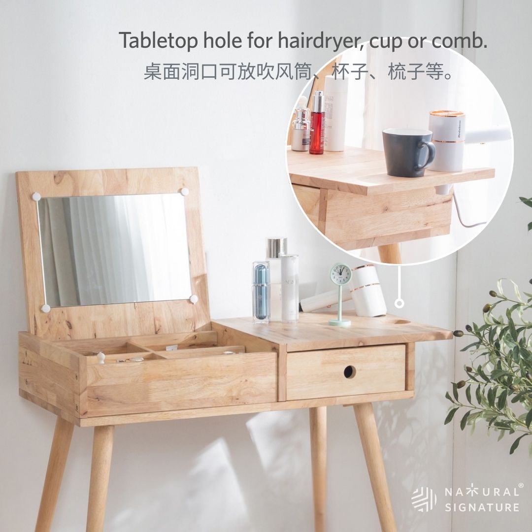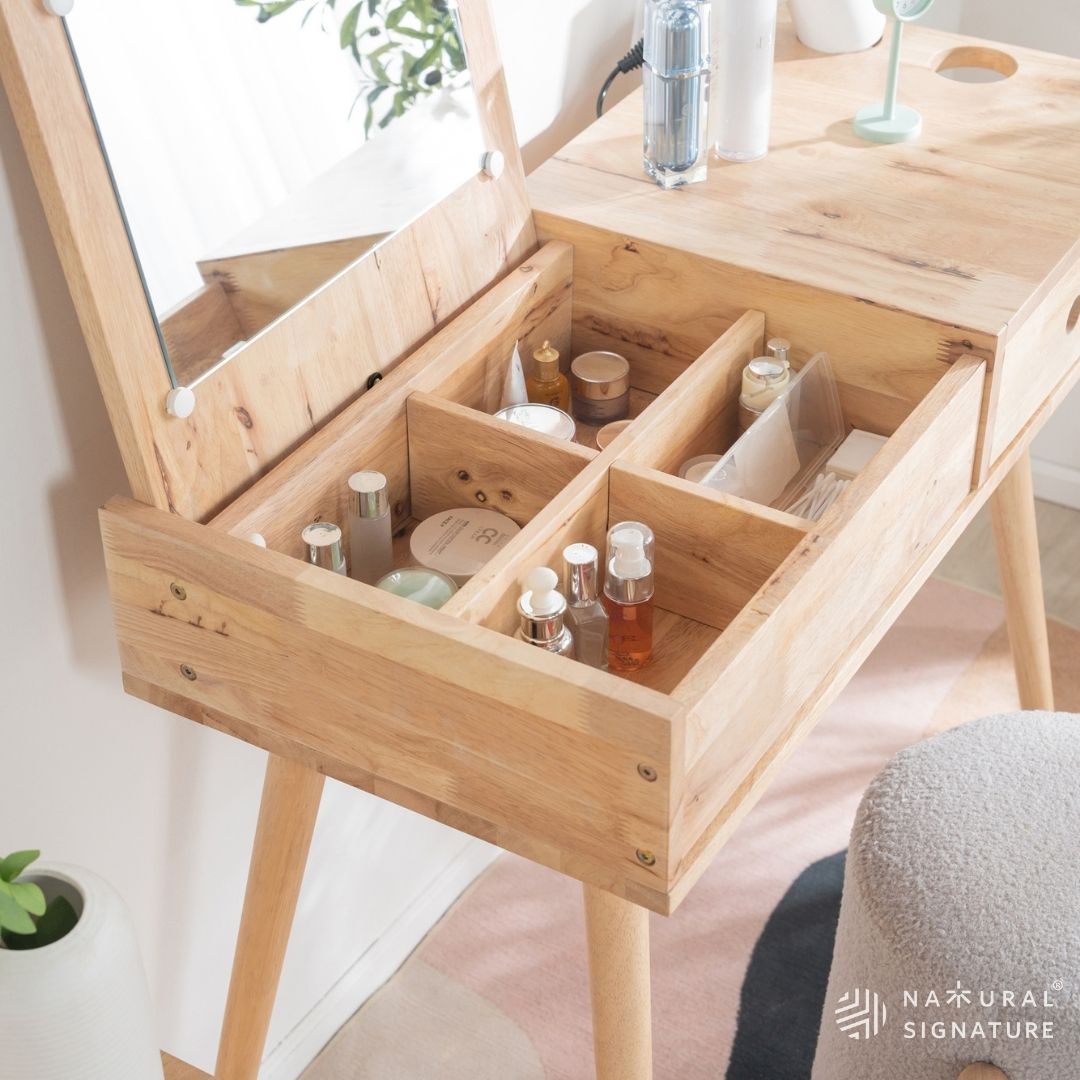 • Meja solek yang direka lengkap dengan ruang penyimpanan.