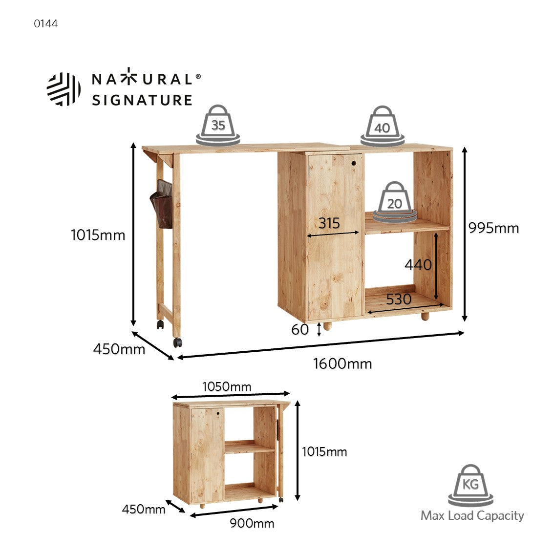 • Saiz: P1600/1050 x L/D450 x T995/1015 mm