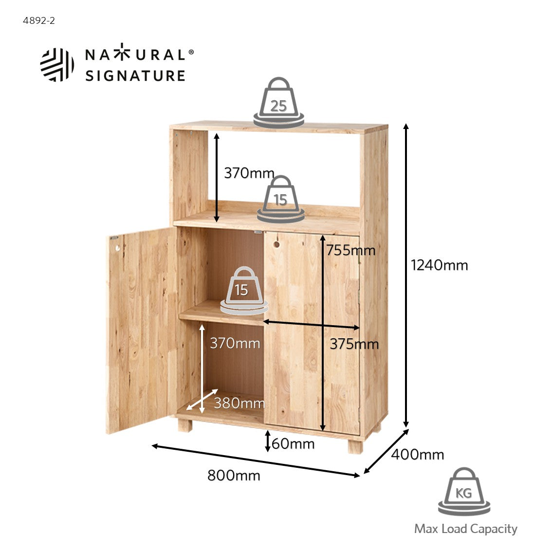 • Rak terbuka di bahagian atas dan pintu kabinet tertutup di bawah.