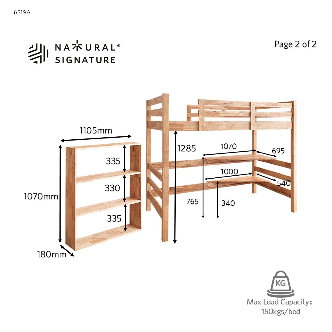 • 适合的床垫尺寸: 1070 x 1900~2000 毫米
