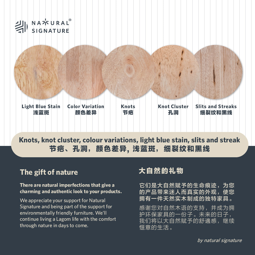►我们的木制产品经手工磨砂,该过程可能会造成0.5~1毫米的厚度差、细微的粗糙或微小的缺陷,但这些自然因素都不会影响产品功能。